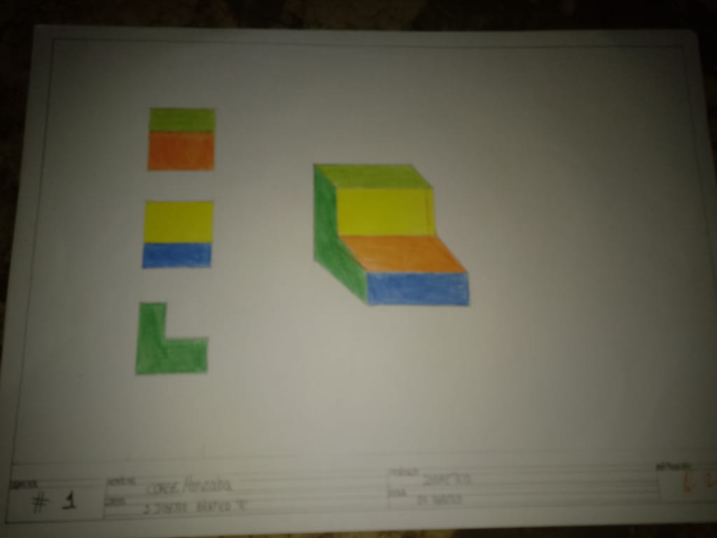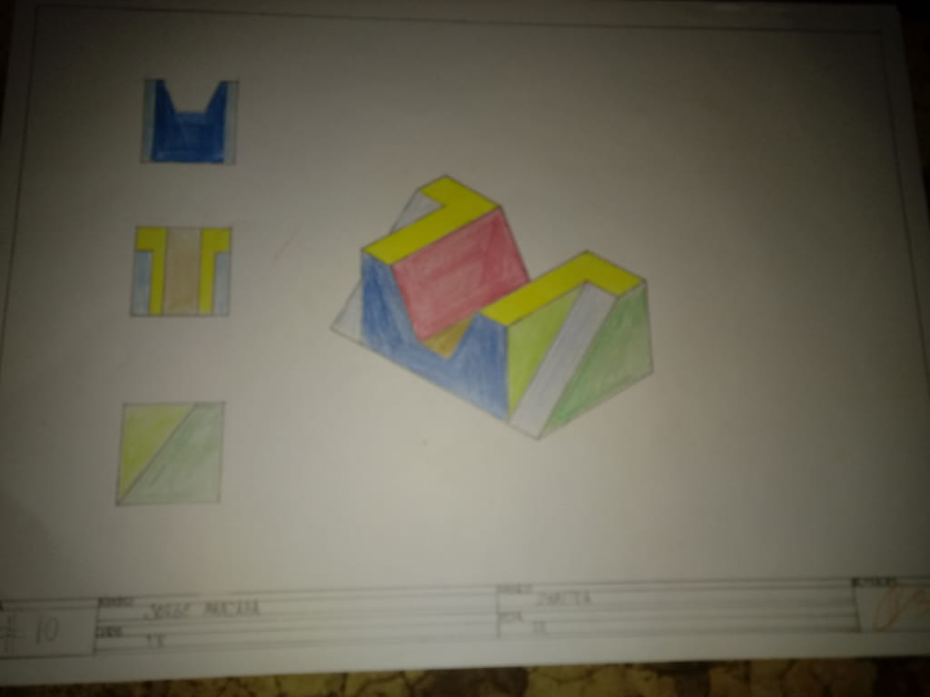 Trabajo de dibujo técnico en forma de triángulos y escalera utilizando un modelo de tres caras
